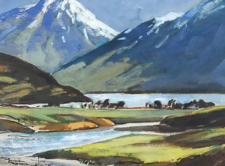John Gully. 1878. Mt Gold, Lake Wanaka & Mount Burke Station. Watercolour.