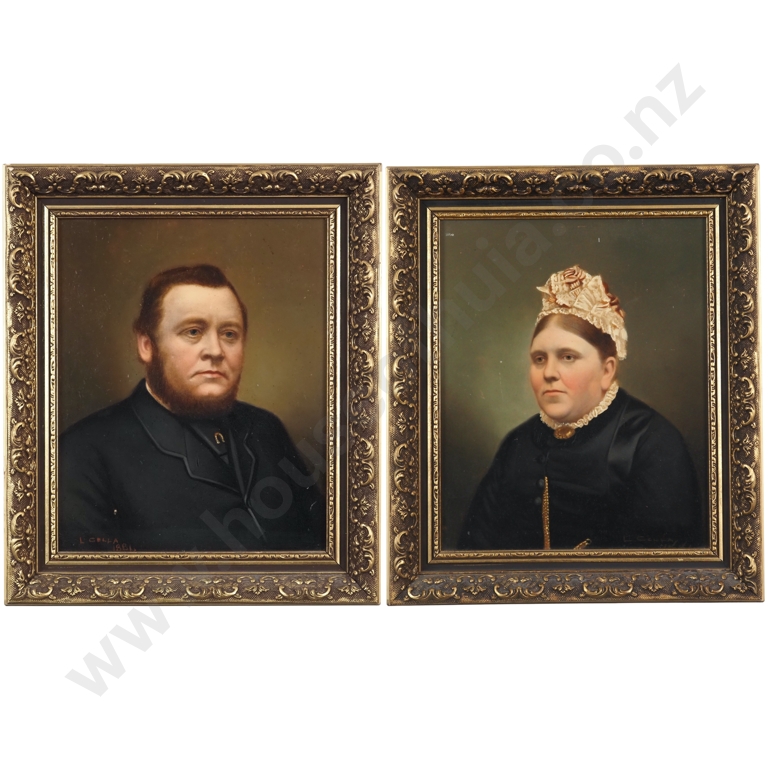 L Cella. 1881. Pair of Portraits - Victorian Man & Woman. Oil on Board.