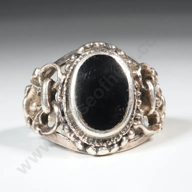 Ornate Sterling Silver & Oval Onyx Ring