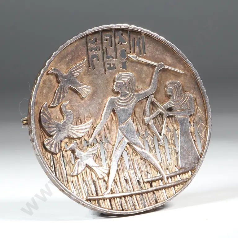 Sterling Silver Circular Brooch with Egyptian Motifs