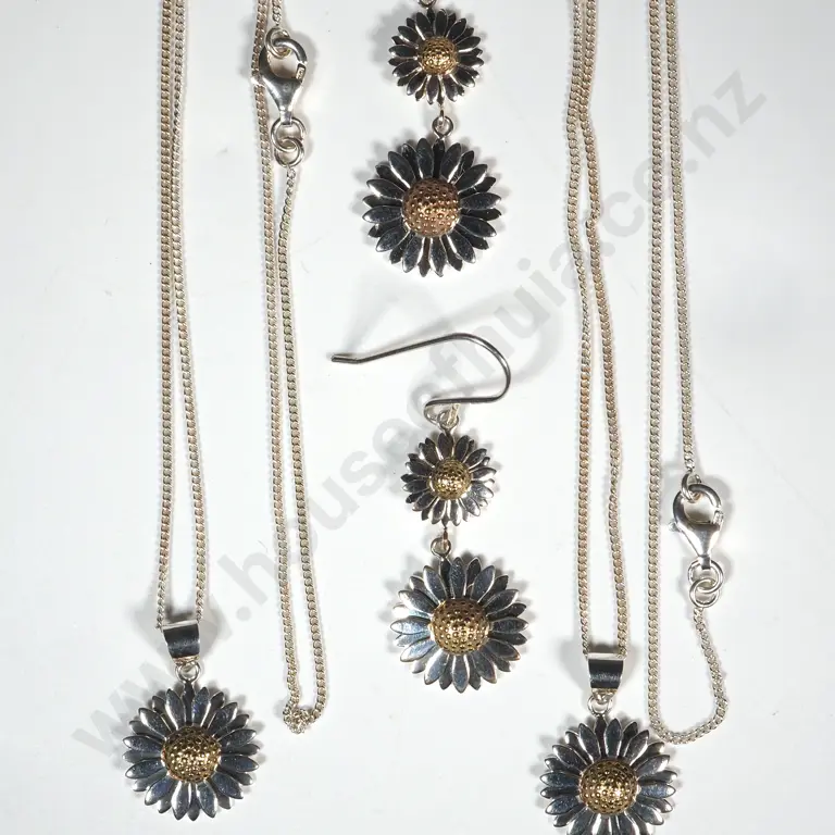 Sterling Silver Pendant & Earrings Sunflower Set
