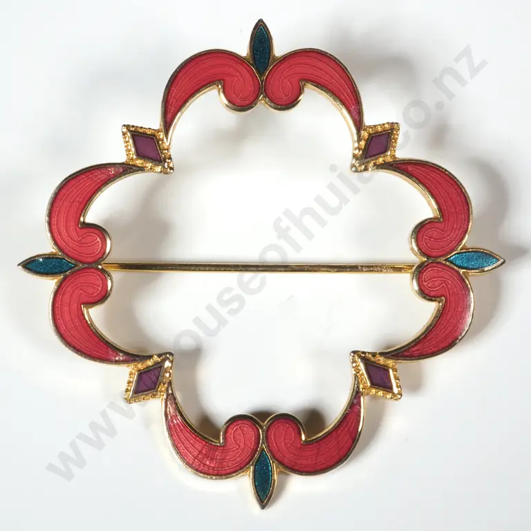Gold Tone & Enamel Quatrefoil Shaped Brooch