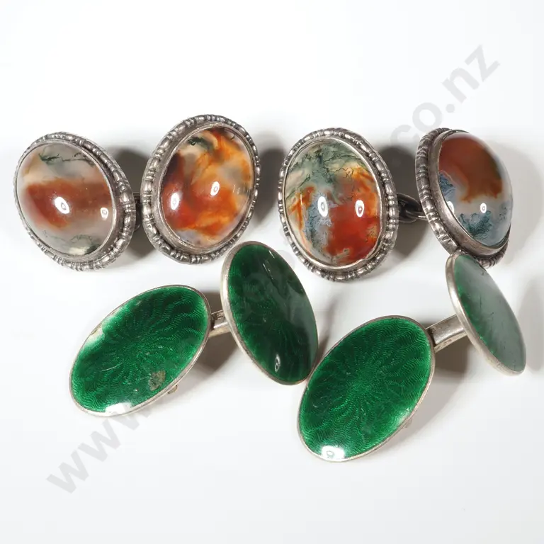 Pair of Agate Cufflinks & a Pair of Green Enamel Cufflinks