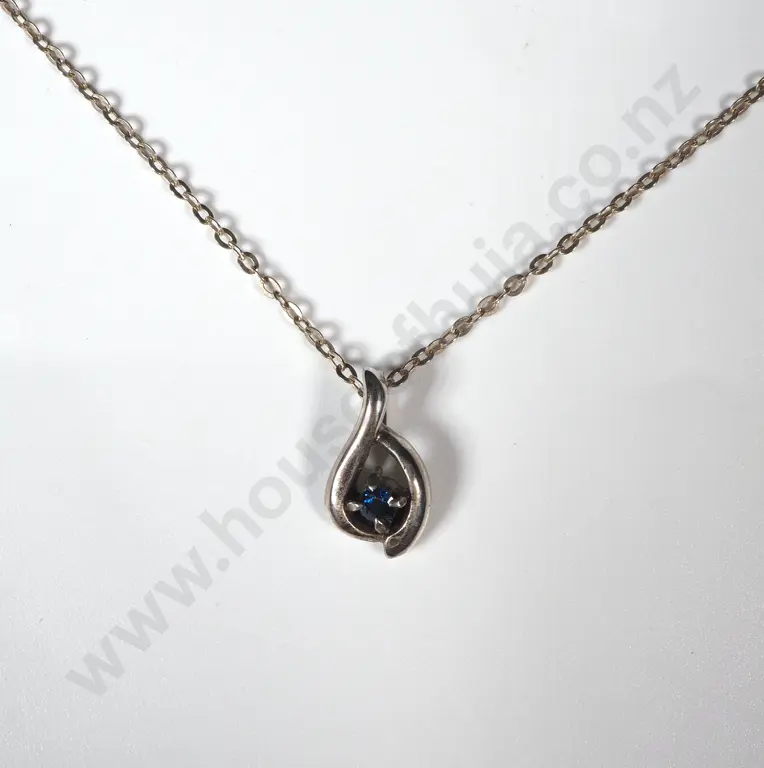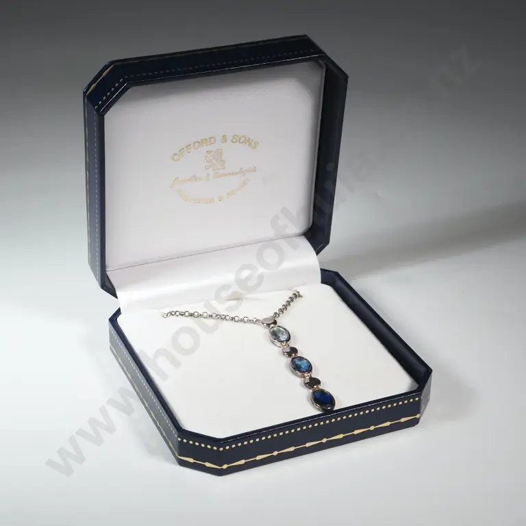 Sterling Silver Pendant Necklace. Pendant - Alternating Dark Blue/Pale Blue Gems and Silver Circles.