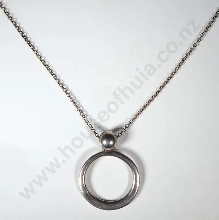 Sterling Silver Chain & Circle & Ball Pendant.