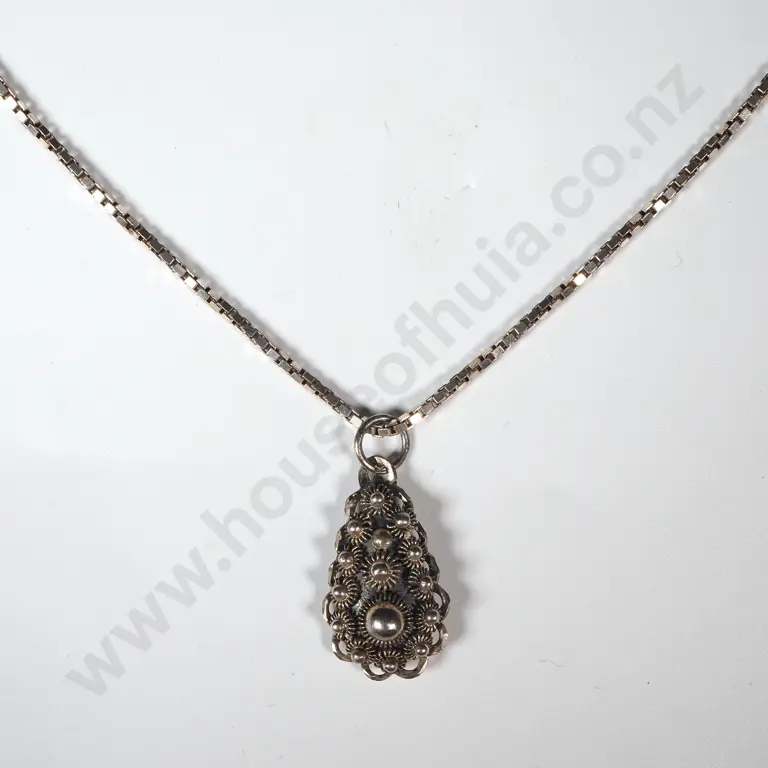 Sterling Silver Box Link Chain & Pendant.