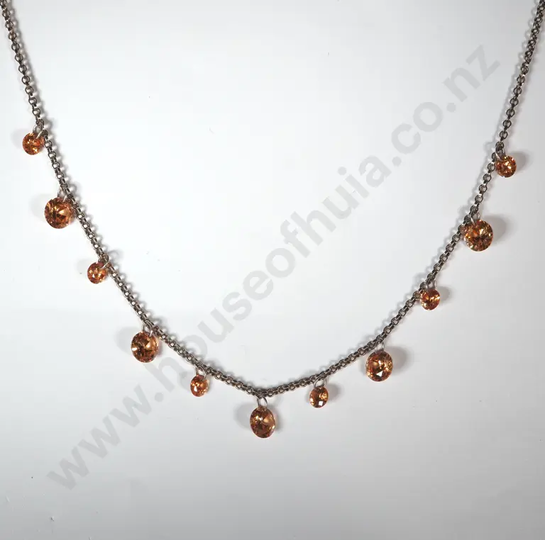 Sterling Silver Necklace w Amber Coloured Accent Crystals.
