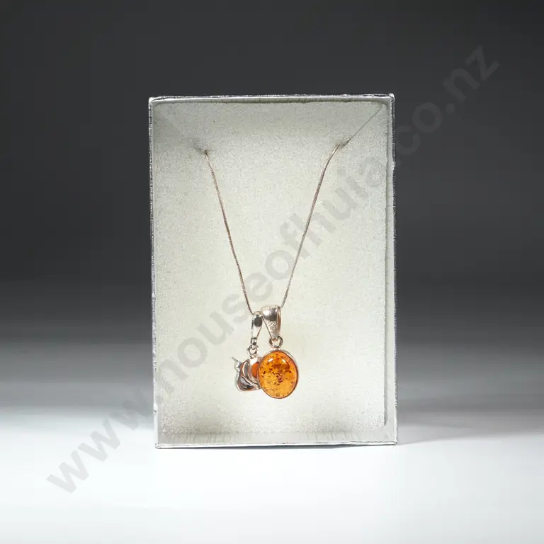 Two Sterling Silver /Amber Pendants & a Silver Chain.