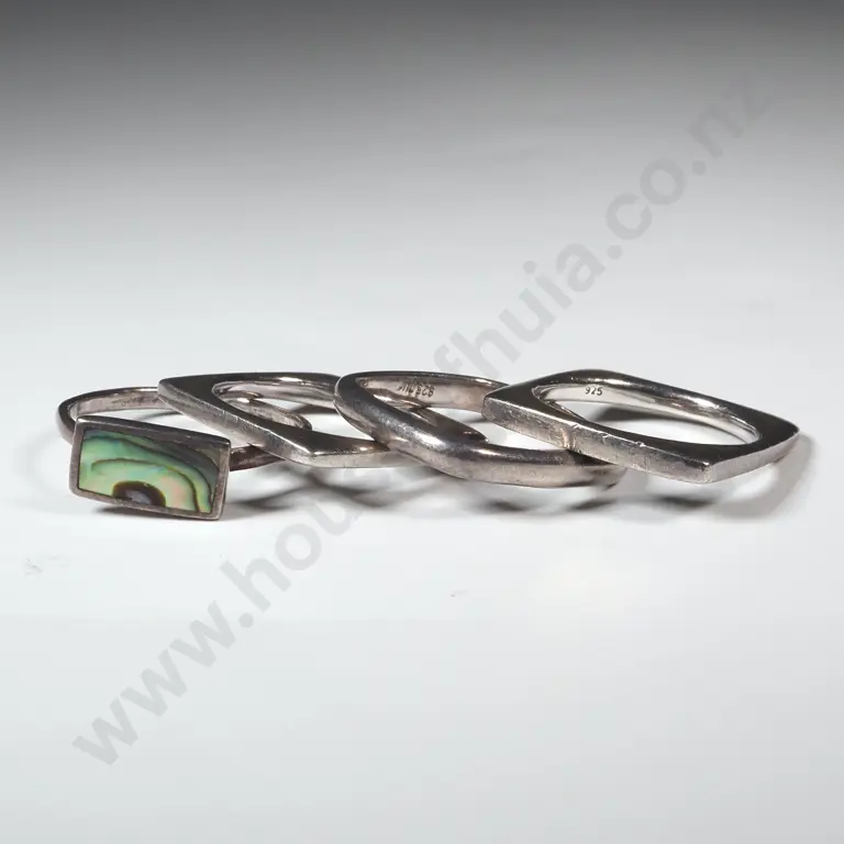 Four Vintage Sterling Silver Rings Incl One Paua Estimate: $80 - $120