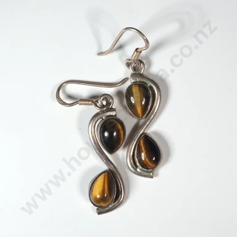 Pair of Sterling Silver Tiger's Eye Drop Earrings Estimate: $40 - $80