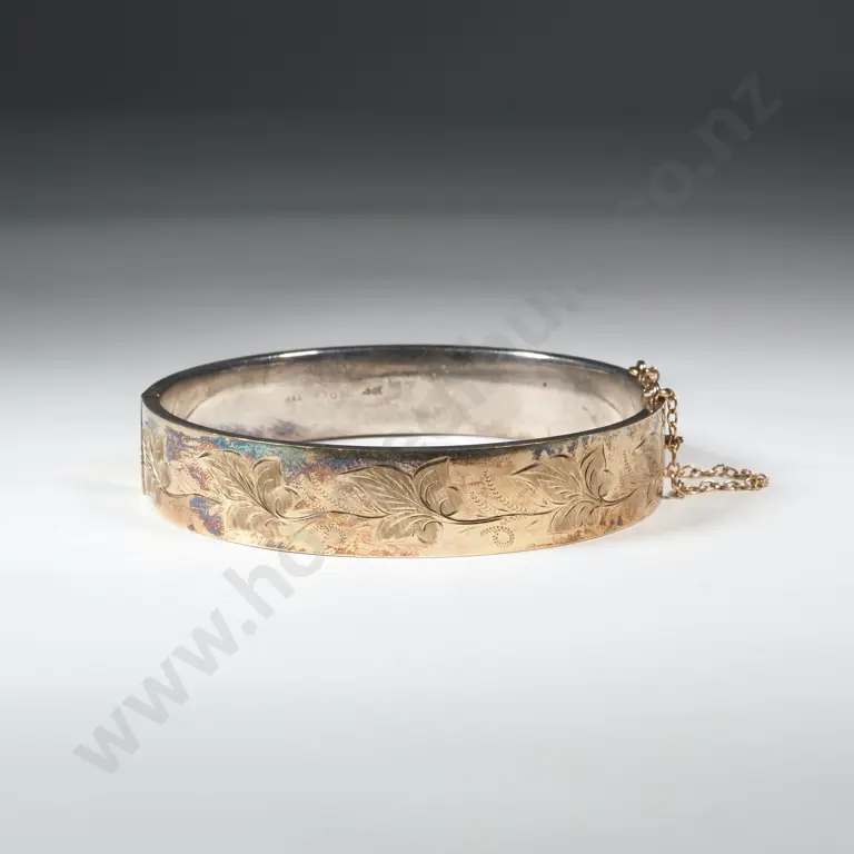 9ct Gold On Sterling Silver Snap Bangle Estimate: $40 - $80