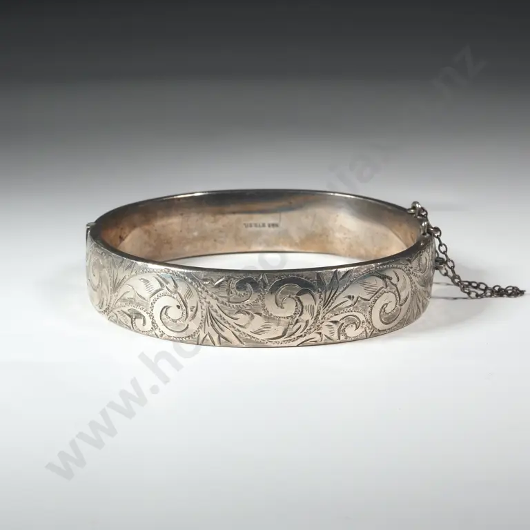 Sterling Silver Engraved Snap Bangle