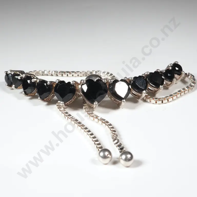 Sterling Silver Adjustable Chain Bracelet with Decorative Blue Heart Shaped Stones