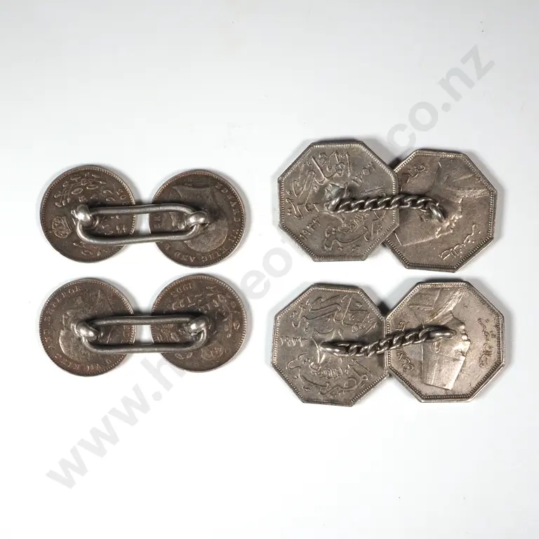 Two Pairs of Sterling Silver Coin Cufflinks
