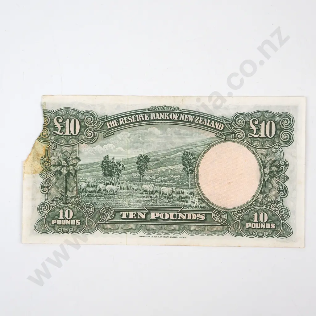 TEN POUNDS, FLEMING SIGNATURE, SERIAL AJ 672900, VERY FINE BUT DAMAGED
