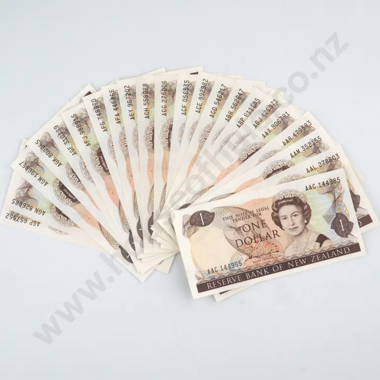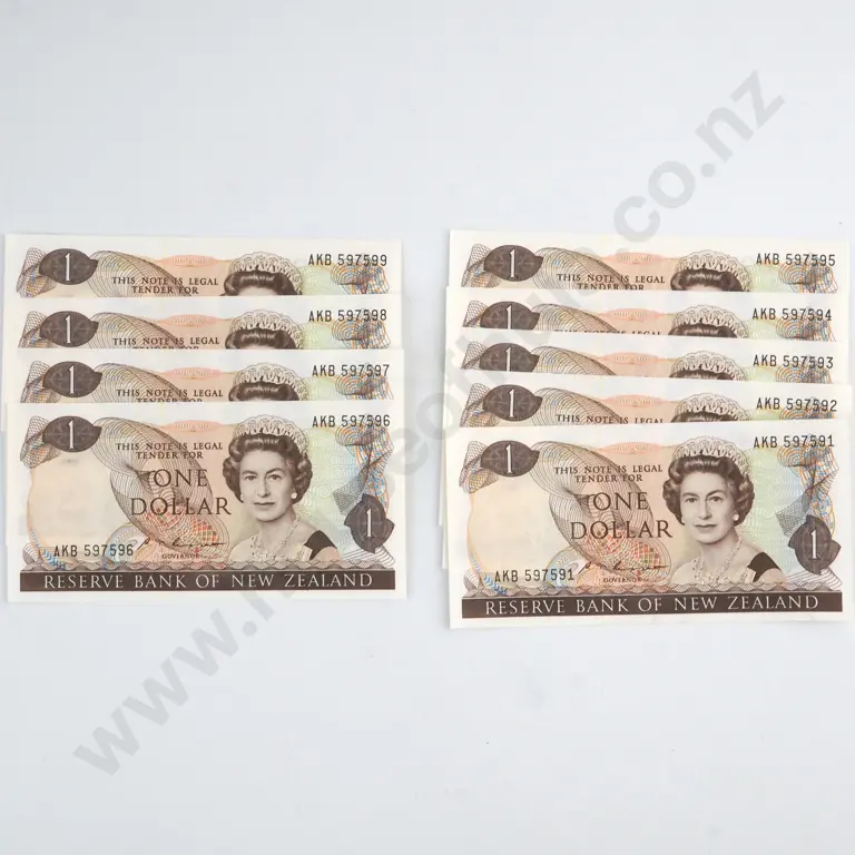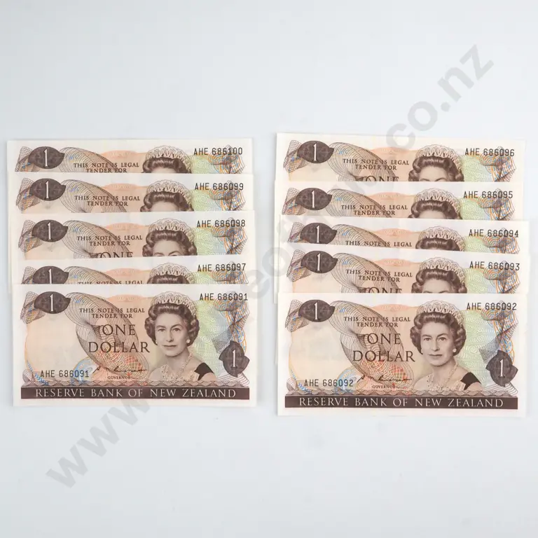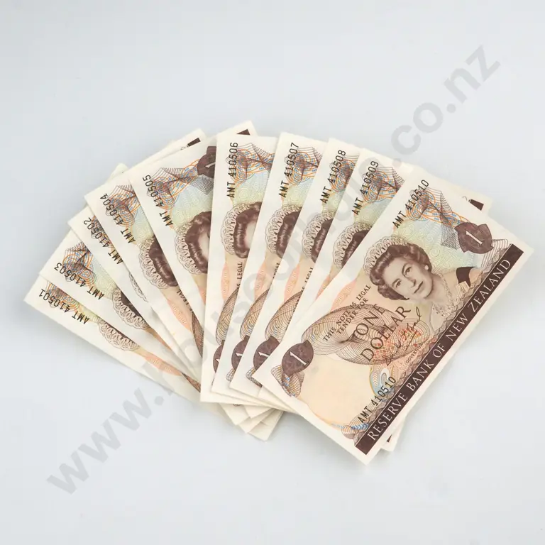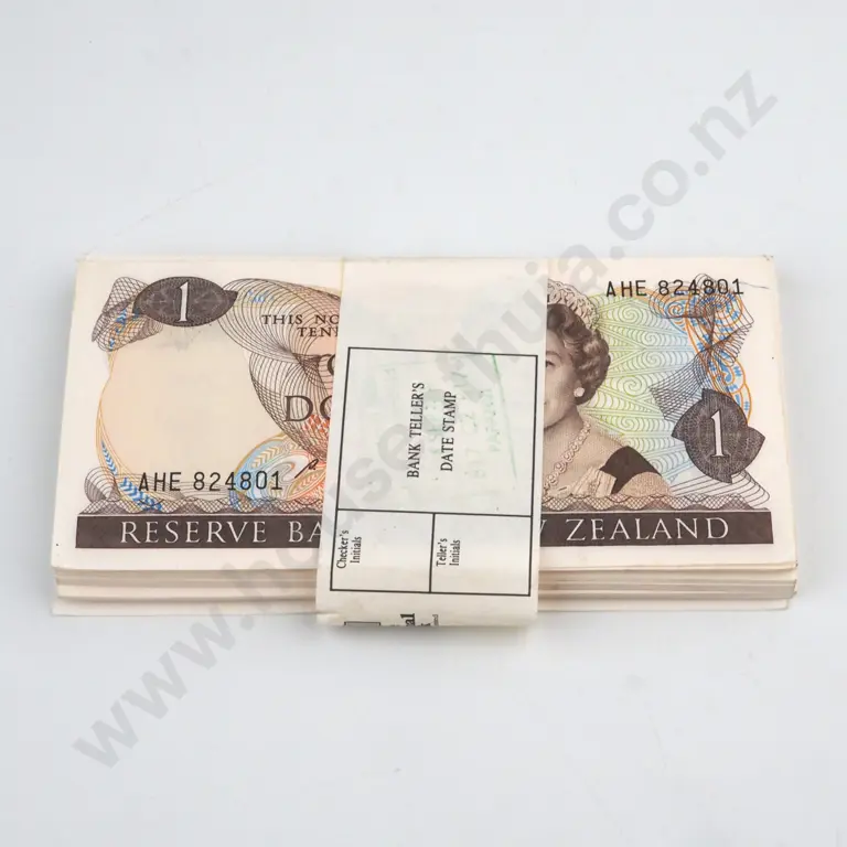 1000 X CONSECUTIVELY NUMBERED BRASH SIGNATURE ONE DOLLAR BANKNOTES, SERIALS ANS 108001 -9000 (LAST PREFIX), UNCIRCULATED WITH BANK WRAPPERS, & SEALED IN RESERVE BANK PLASTIC C.V. $15000