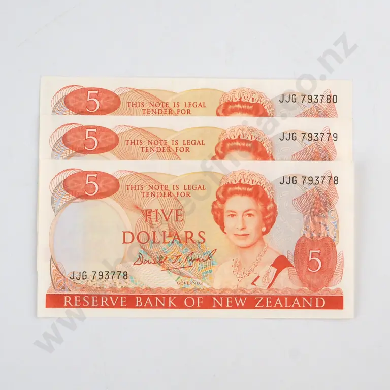 3 X CONSECUTIVELY NUMBERED BRASH SIGNATURE, SERIALS JJG 793778 / 9 / 80, ALMOST UNCIRCULATED, C.V. $120