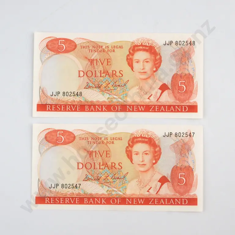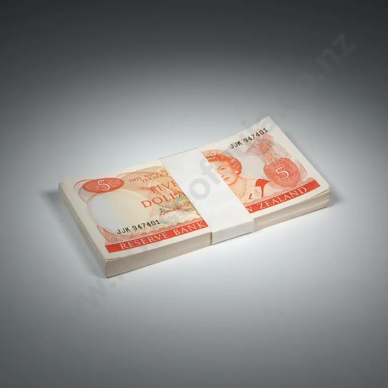 100 X CONSECUTIVELY NUMBERED FIVE DOLLAR BRASH SIGNATURE FIVE DOLLAR BANKNOTES, SERIALS JJK 947401 TO 947500, UNCIRCULATED, C.V. $5000