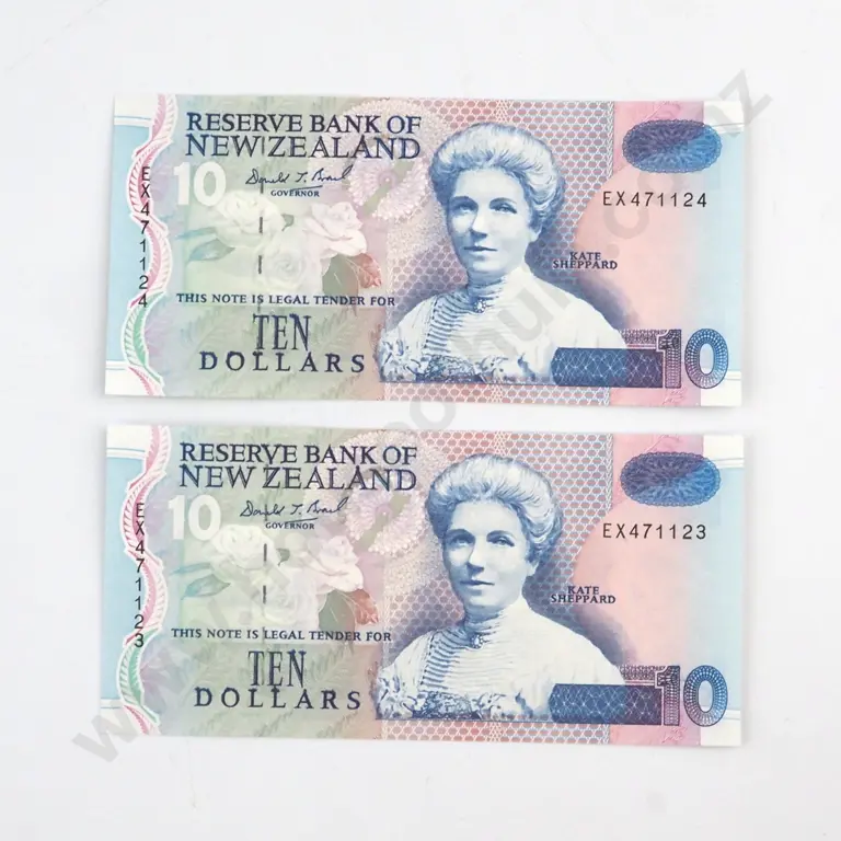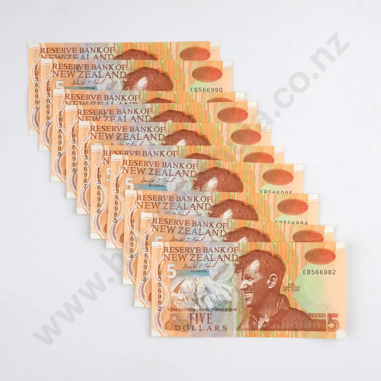 10 X CONSECUTIVELY NUMBERED BRASH TYPE 3 SIGNATURE 1993-1997, SERIALS EB566982 TO EB566991 ( LAST PREFIX OF TYPE ), UNCIRCULATED, C.V. $300