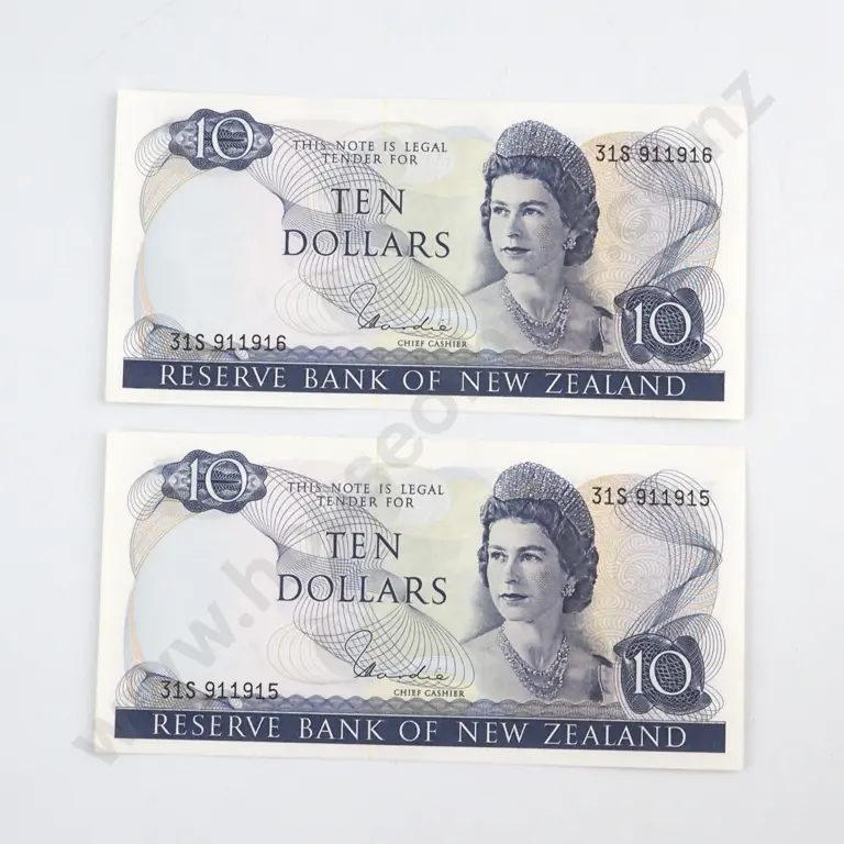 CONSECUTIVELY NUMBERED PAIR HARDIE TYPE 1 SIGNATURE, SERIALS 31S 911915 / 6, ALMOST UNCIRCULATED, C.V. $125