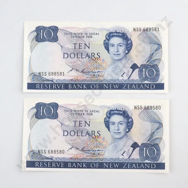 CONSECUTIVELY NUMBERED PAIR RUSSELL SIGNATURE, SERIALS NSS 688580 / 1, UNCIRCULATED, C.V. $180