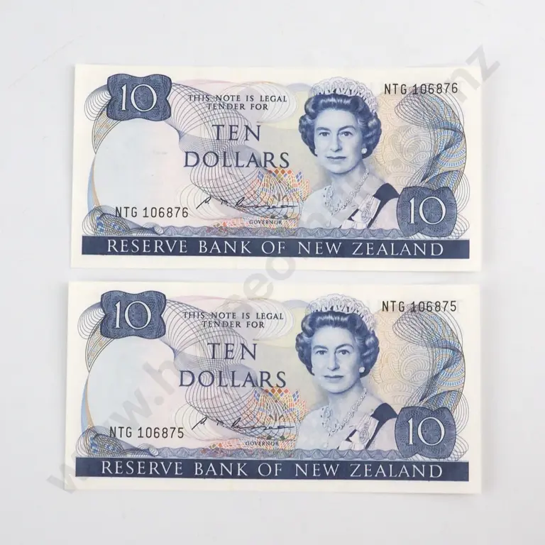 CONSECUTIVELY NUMBERED PAIR RUSSELL SIGNATURE, SERIALS NTG 106875 / 6, UNCIRCULATED, C.V. $180