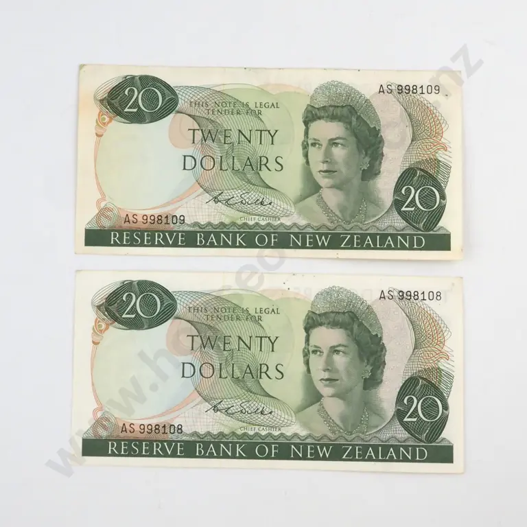 CONSECUTIVELY NUMBERED PAIR WILKS SIGNATURE, SERIALS AS 998108 / 9 ( FIRST PREFIX OF SIGNATURE ), VERY FINE, C.V. $700