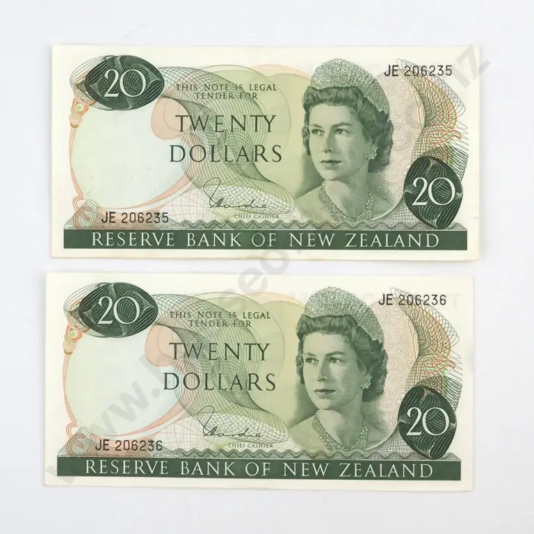 CONSECUTIVELY NUMBERED PAIR HARDIE TYPE 1 SIGNATURE, SERIALS JE 206235 / 6, ALMOST UNCIRCULATED, C.V. $350