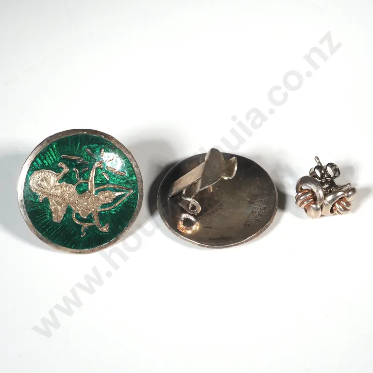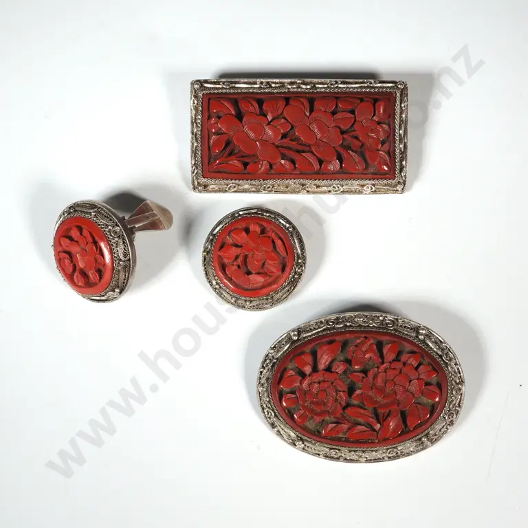 Sterling Silver Red Cinnabar Style Mounted Brooches & Clip on Earrings