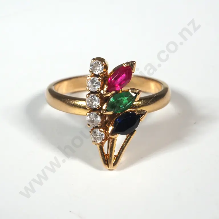 18ct Gold & Coloured Red, Blue & Green Gemstones With CZs