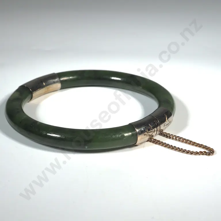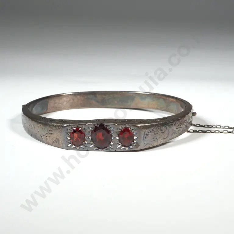 Vinage Sterling Silver Hinged Bangle With Fret Supports & Set With Three Garnet Coloured Stones