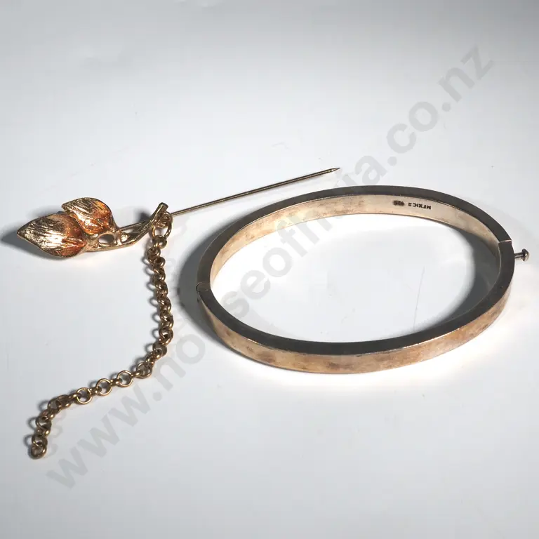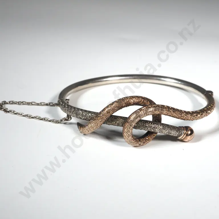 800 Silver Hinged Bracelet with Gold Tone & Silver Engraved Knot Decoration To Front