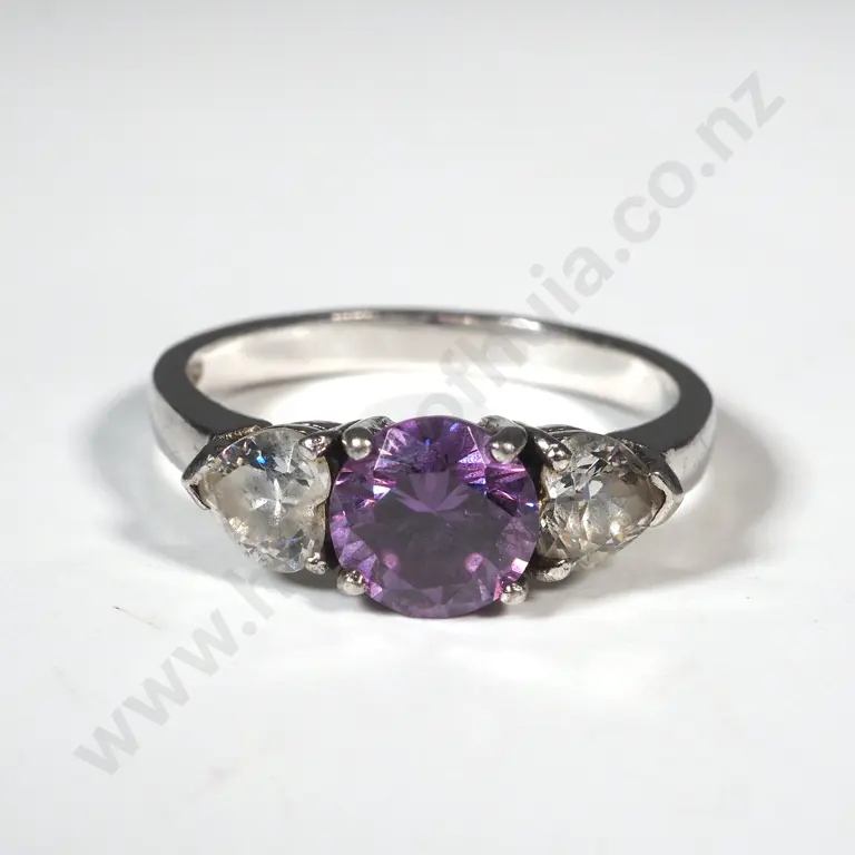 Sterling Silver Amethyst & White Stone Ring Estimate: $40 - $80