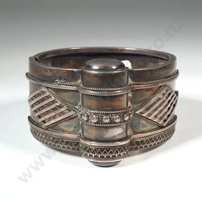 Ornate Decorative Hinged Bangle in Sterling Silver Estimate: $100 - $200