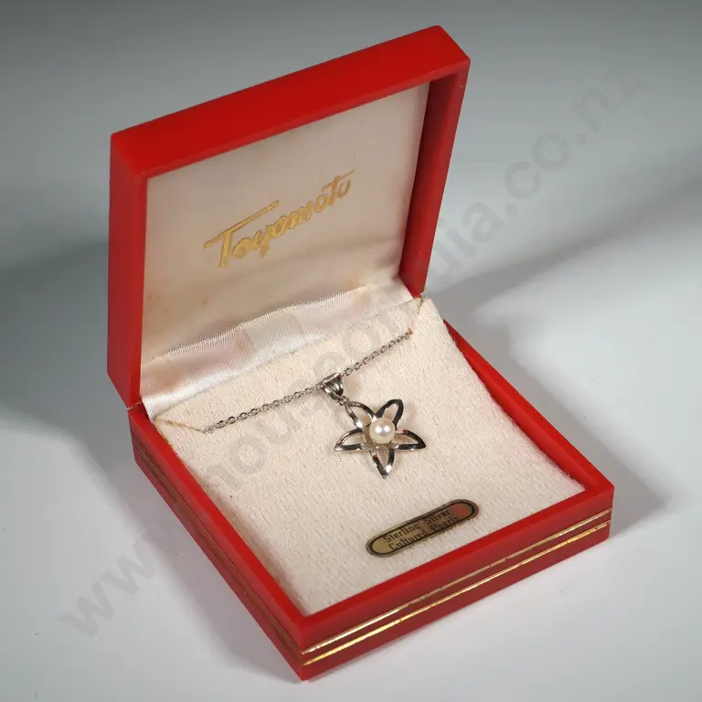 Boxed Toyomoto Sterling Silver Chain & Cultured Pearl Pendant.