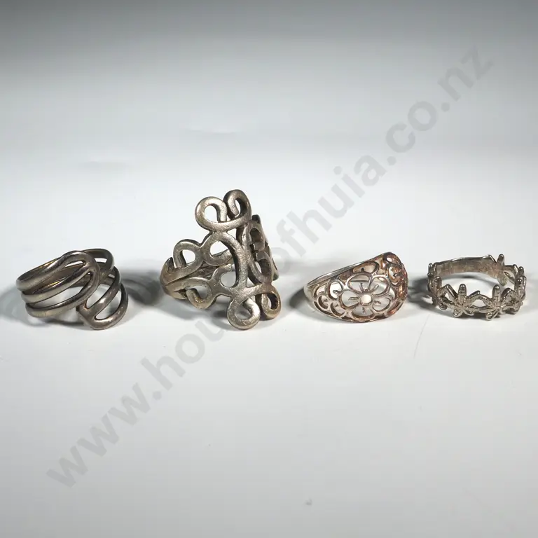 Four Sterling Silver Rings w Pierced Openwork Decoration Estimate: $40 - $80