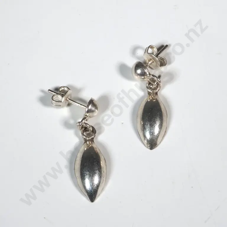 Pair Of Sterling Silver Oval Drop Earrings Estimate: $20 - $40
