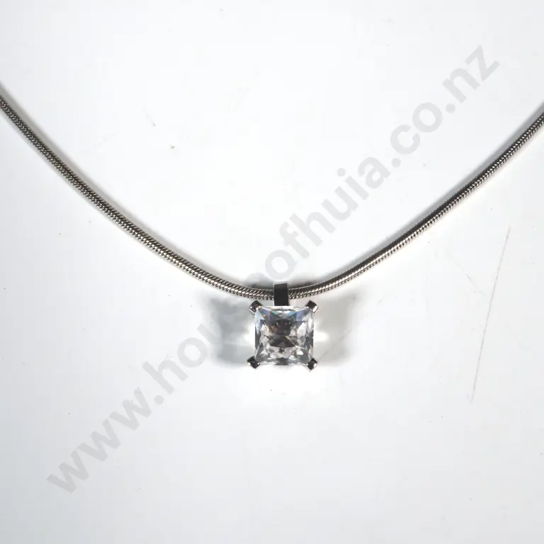 Single Square White Stone Pendant Suspended on A Sterling Silver Snake Chain Estimate: $40 - $80