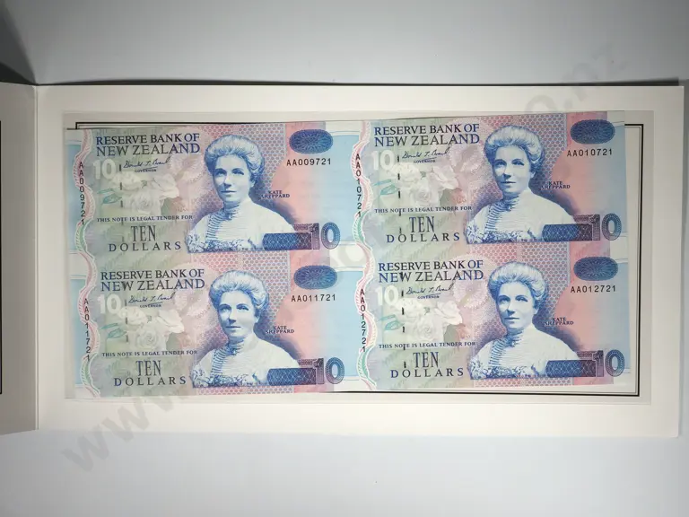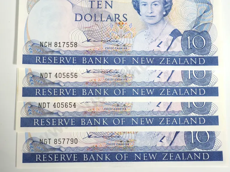4 X RESERVE BANK OF NEW ZEALAND TEN DOLLARS HARDIE T2 UNC