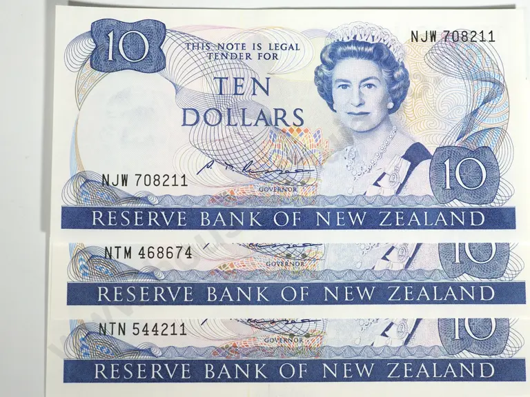 3 X CONSEC RESERVE BANK OF NEW ZEALAND TEN DOLLARS KNIGHT VF
