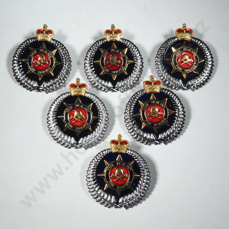One New Zealand Fire Service Hat Badge w Gold Wash Fern Leaves.