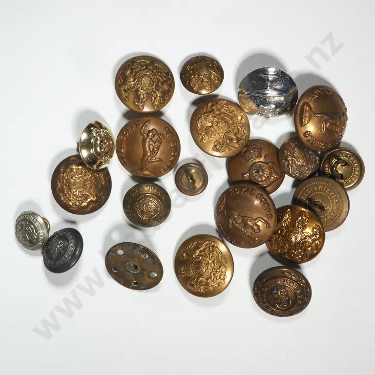 Assorted Lot of Artillery Buttons, Lapel Badges, Cartridge Case etc..