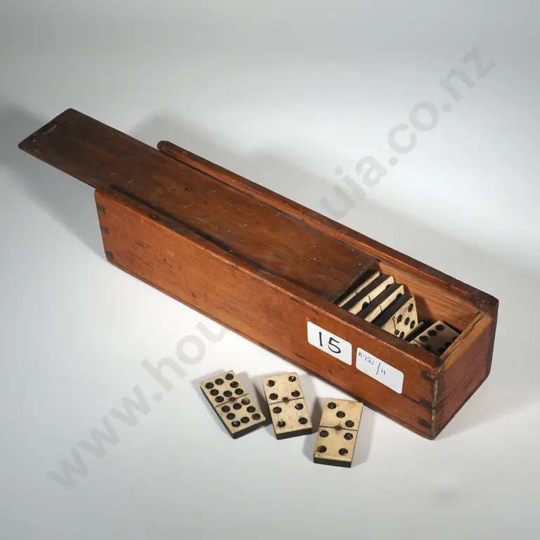 Small Wooden Box Containing Bone & Ivory Dominos
