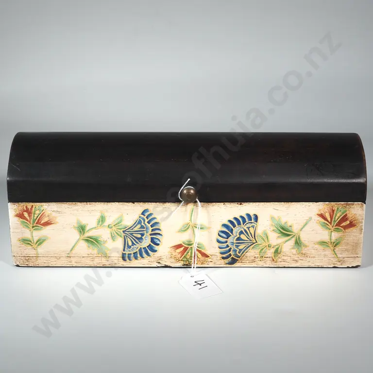 Dome Topped Elongonated Box With Painted Floral Base