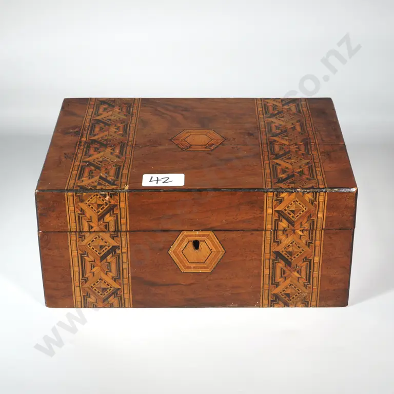 Victorian Inlaid Marquetry Wooden Trinket/Jewellery Box. No Key.