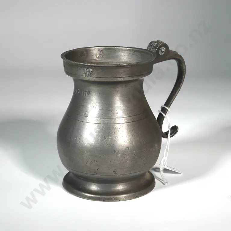 Antique Pewter Drinking Vessel Stamped '1/2 PT o4 1890 & Various Other Marks.