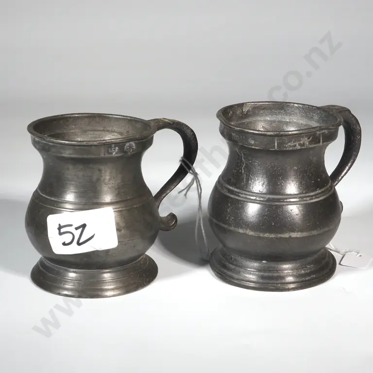 Two Antique Pewter Drinking Vessels Stamps Difficult to Decipher.