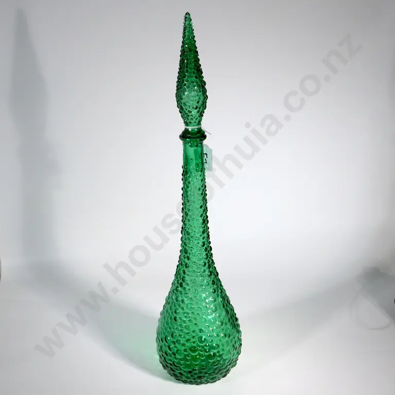Italian Empoli Art Glass Green Genie Bottle With Hobnail Design