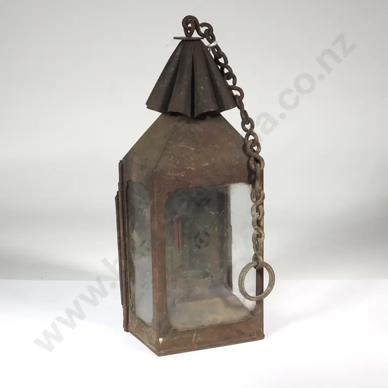 Three Sided Bevelled Glass Kerosene Hand Lantern. Possibly European