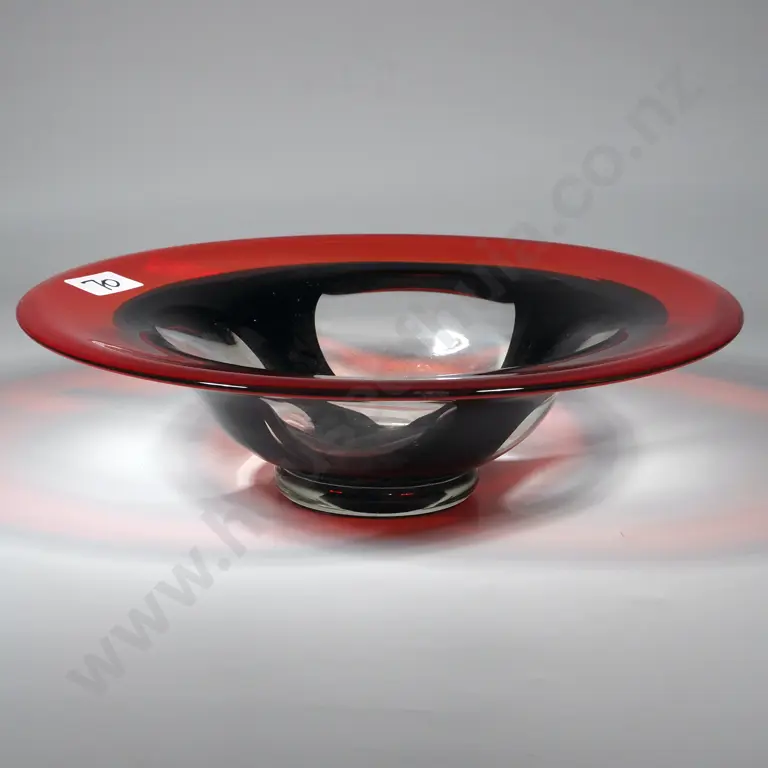 Vintage Art Glass Bowl In The Style Of Murano Art Glass with Distinctive Red & Black Design